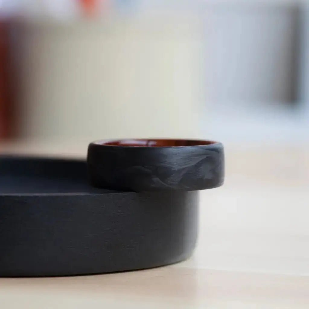 Each ring is handcrafted to order. Variations in cocobolo wood grain and carbon fiber texture are natural and part of the ring’s individuality.